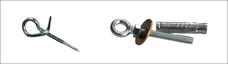 - 2x mechanická kotva v podobě zatočeného háku pro možnost zavěšování bez 2 dalších karabin navíc, anebo kotva s okem - k sehnání v hobbymarketech