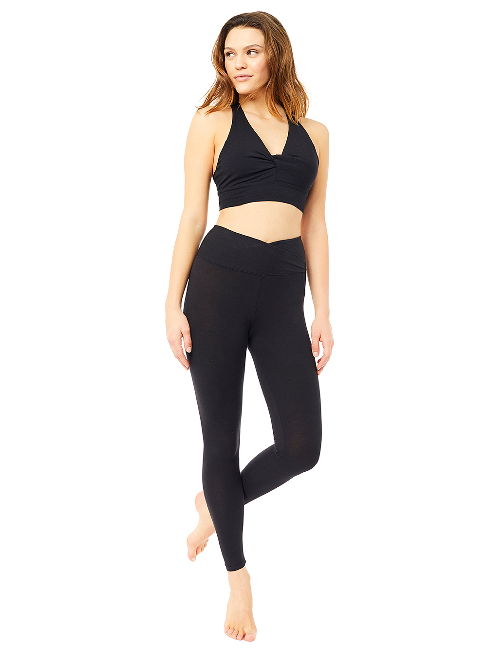 Tyto legíny si zamilujete pro jejich slušivý pas s překříženým efektem, který krásně tvaruje siluetu a zároveň drží při pohybu. Mají plnou délku a jsou vyrobené z certifikované bio bavlny s příměsí elastanu - materiál je měkký, prodyšný a šetrný k pokožce i přírodě. Skvělé na jógu, pilates i každodenní nošení.