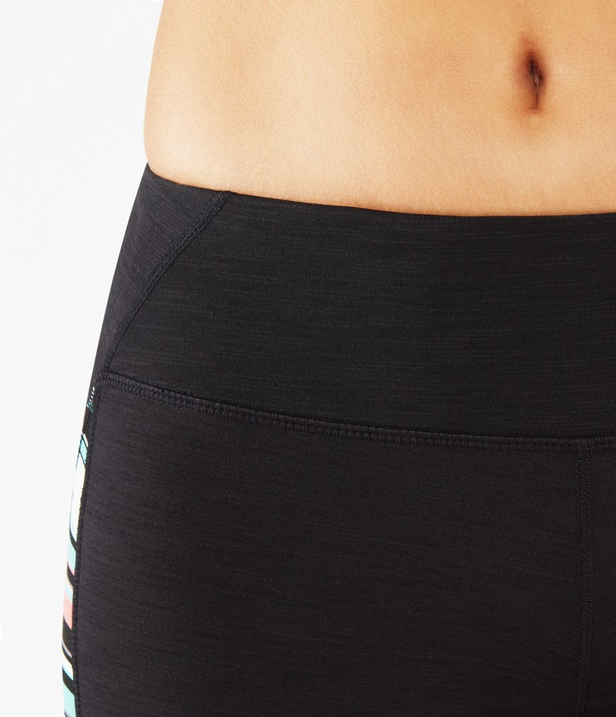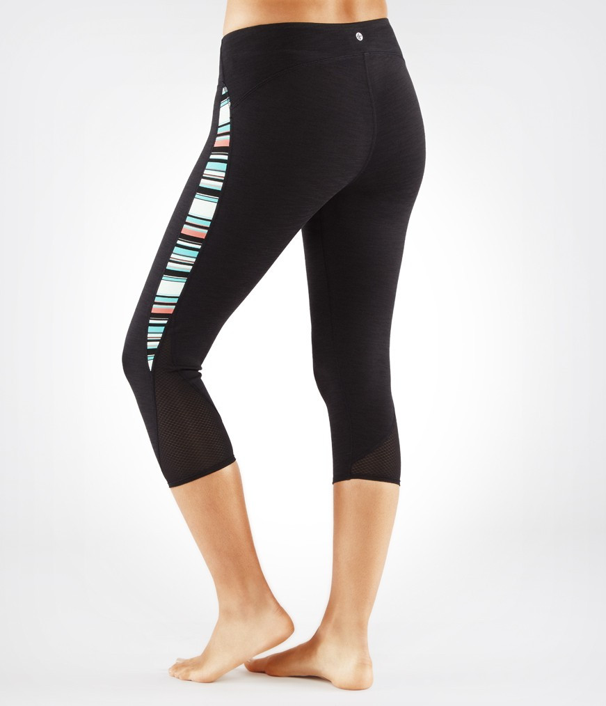 Tříčtvrteční legíny, které si zamilujete! V zadní části pod koleny se elegantně vine 'síťovina', která krásně vypadá a plní také odvětrávací funkci. Pas má slušivé a funkční lemování, boční část nohavic zdobí horizontální barevné proužky.