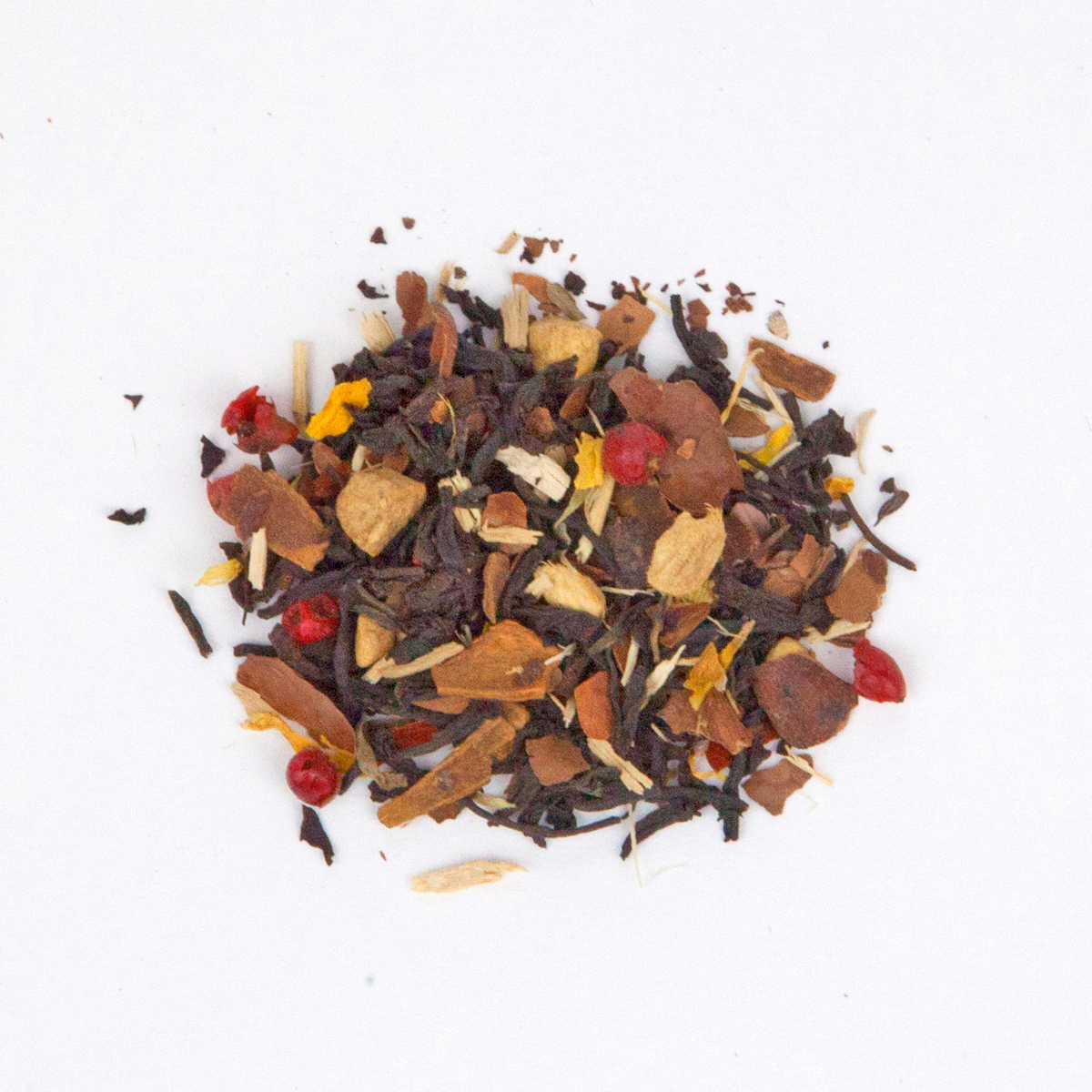 Cejlonský čaj s kakaem, chilli, ženšenem a skořicí.