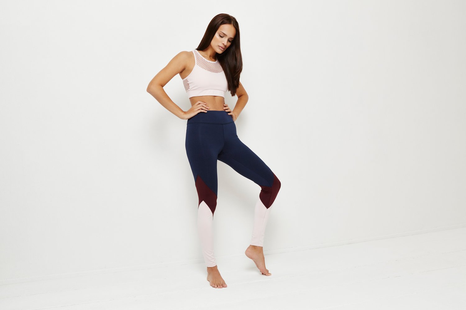 Tyto krásné legíny s designem barevných bloků využijete nejen na lekcích jógy, ale také při mnoha dalších aktivitách.